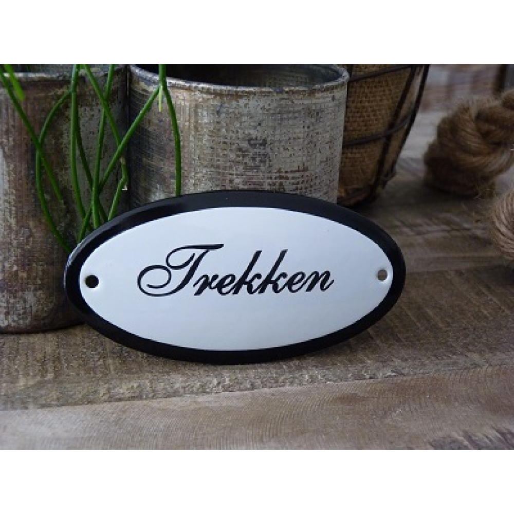 Emaille deurbordje ovaal 'Trekken'