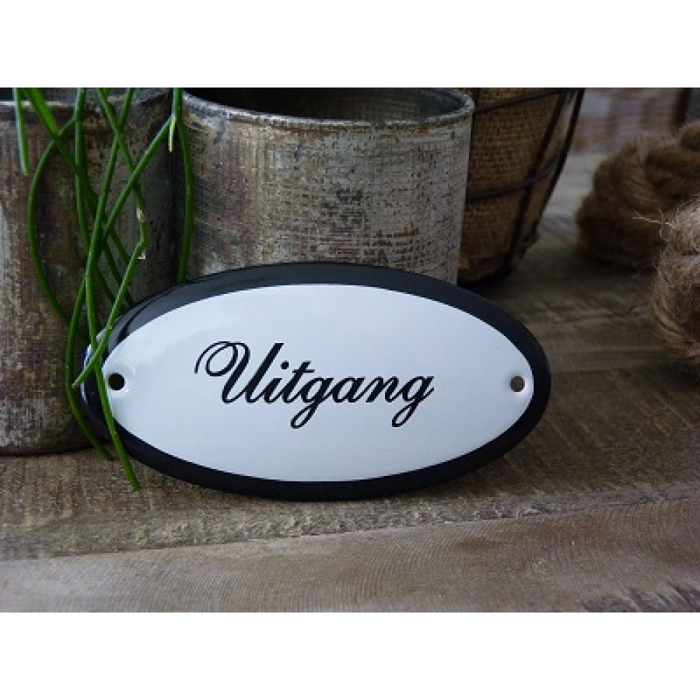 De achtergrond van het bordje is wit met een zwarte rand en zwarte sierletters zoals afgebeeld op de productafbeelding.
