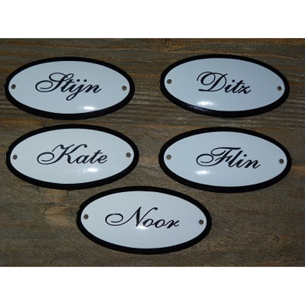 De afmeting van het emaille deurbordje is 10 centimeter breed en 5 centimeter hoog.
