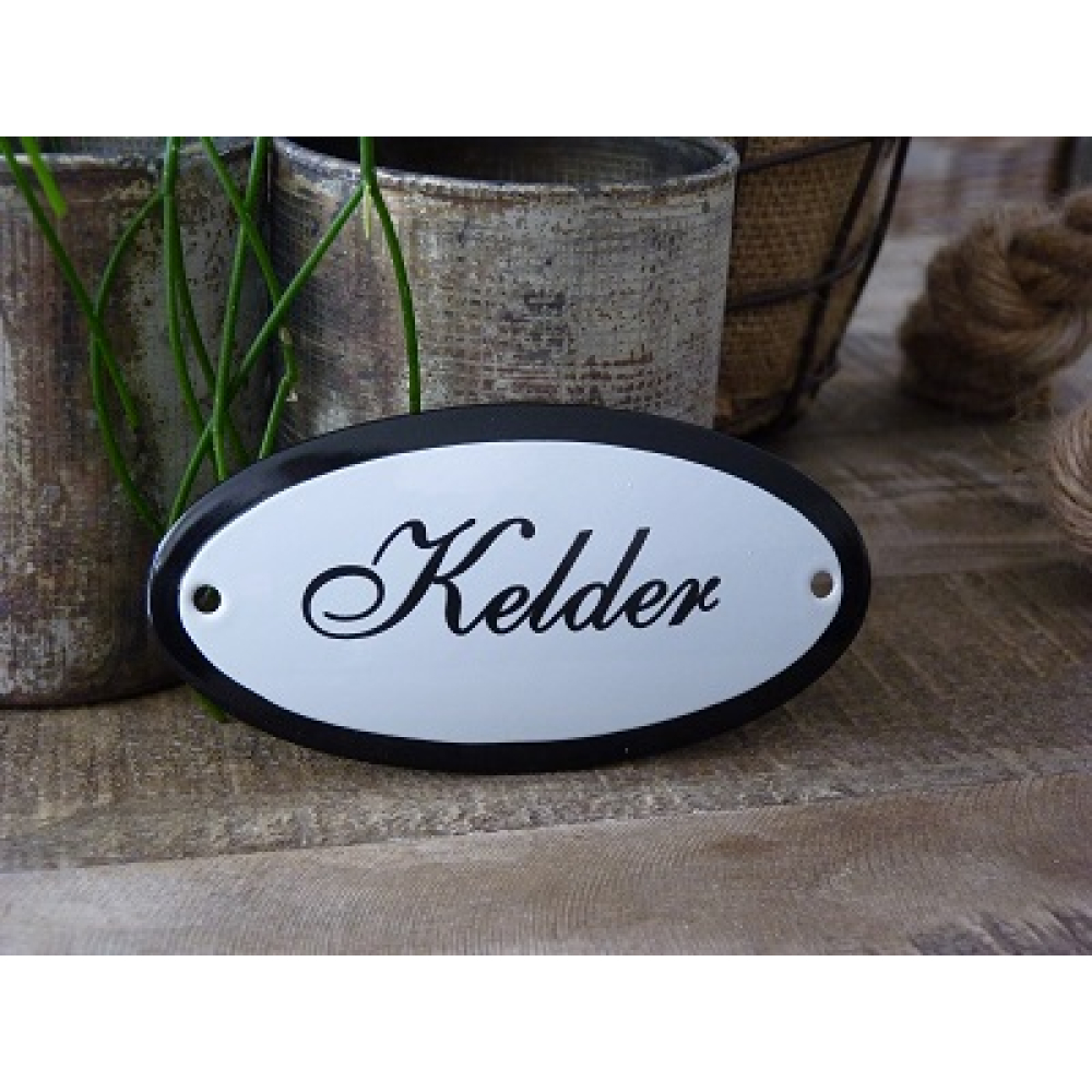 Emaille deurbordje ovaal 'Kelder'