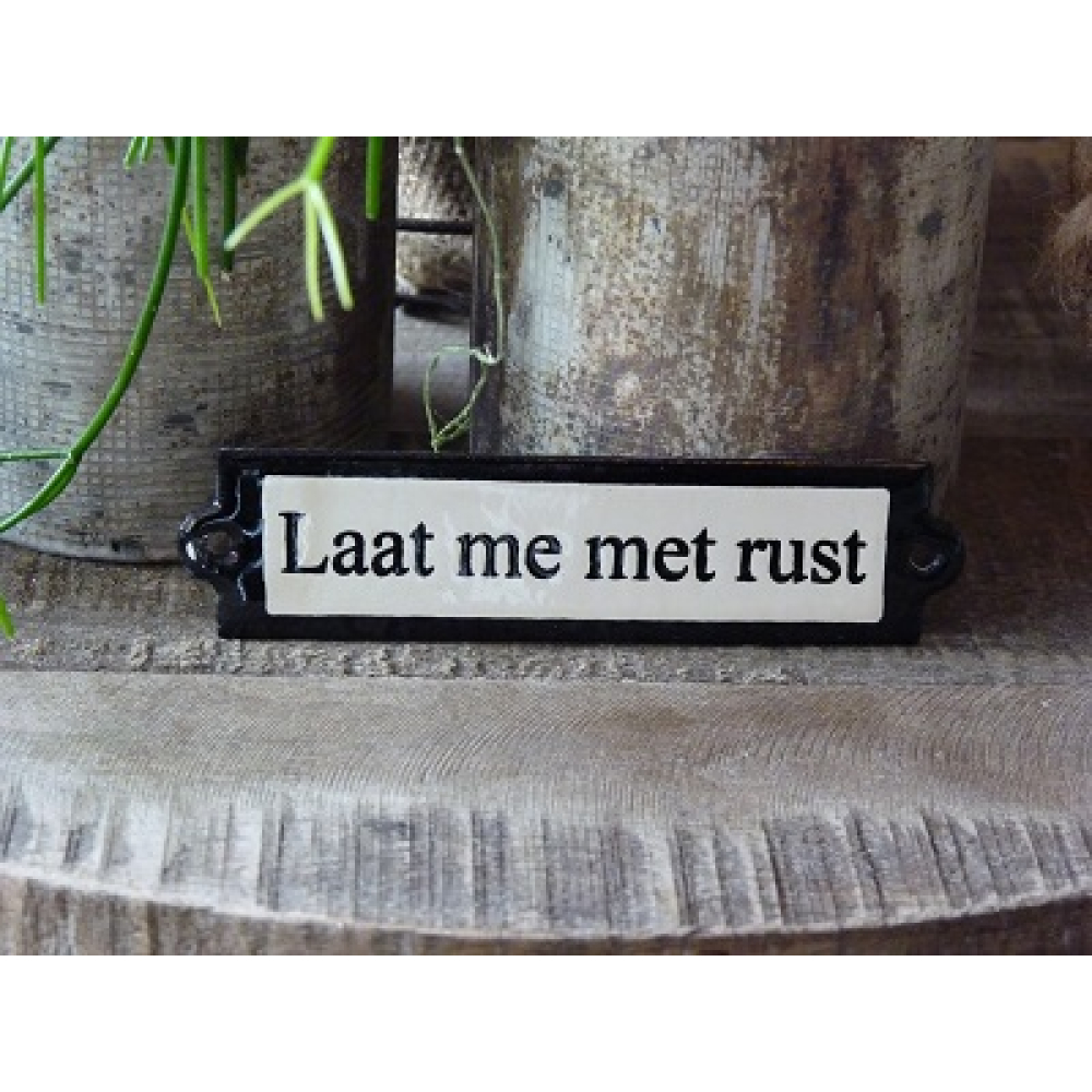De achtergrond van het bordje is creme met een zwarte rand en zware letters, zoals afgebeeld op de productafbeelding.