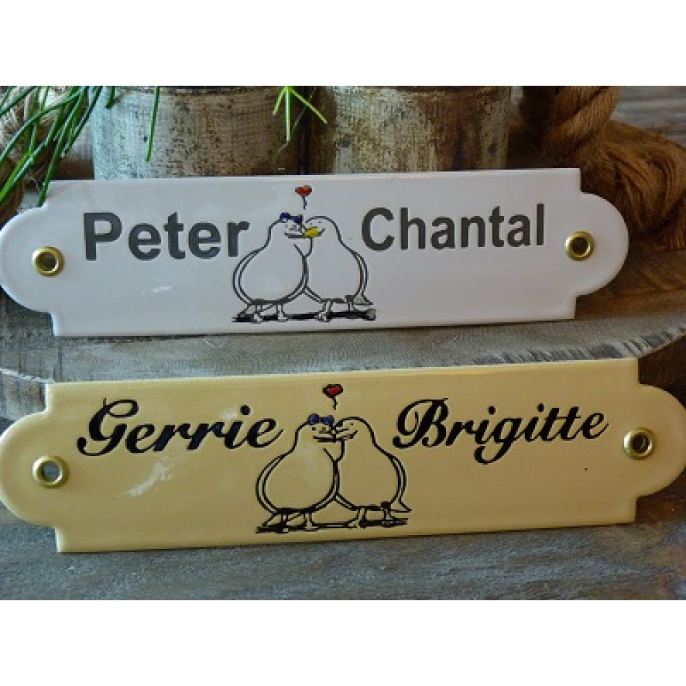 Emaille naambord tortelduifjes oor